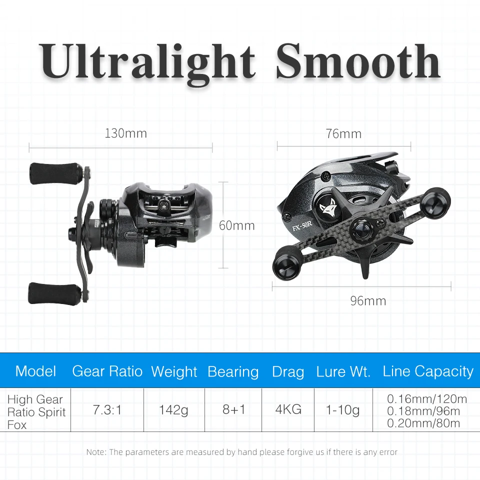 0 Response to "New TSURINOYA Ultralight 142g 7.3:1 High Gear Ratio Casting Fishing Reel SPIRIT FOX Light Game Bait Finesse Carbon Baitcasting Reel"